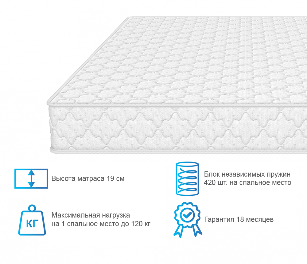 Периметр матраса усилен широким коробом из плотной ортопены, что продлевает срок службы матраса.