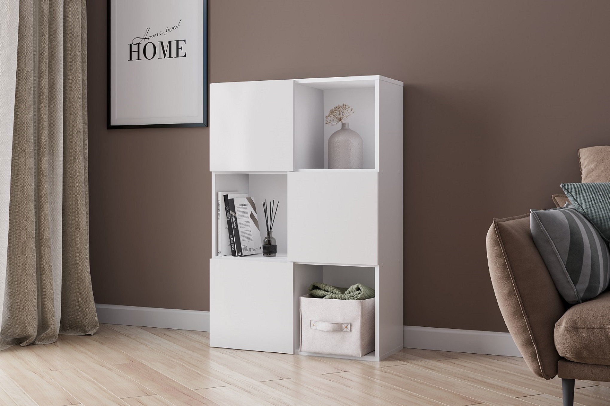 Стеллаж для хранения вещей-это оригинальное и функциональное изделие, которое станет украшением вашего дома, офиса, квартиры или дачи. Данная модель имеет размеры 857*1250*355 мм, изготовлена из высококачественного МДФ с ножками из массива бука. Стеллаж можно использовать для размещения и хранения игрушек, книг, цветов и других вещей в вашем доме.