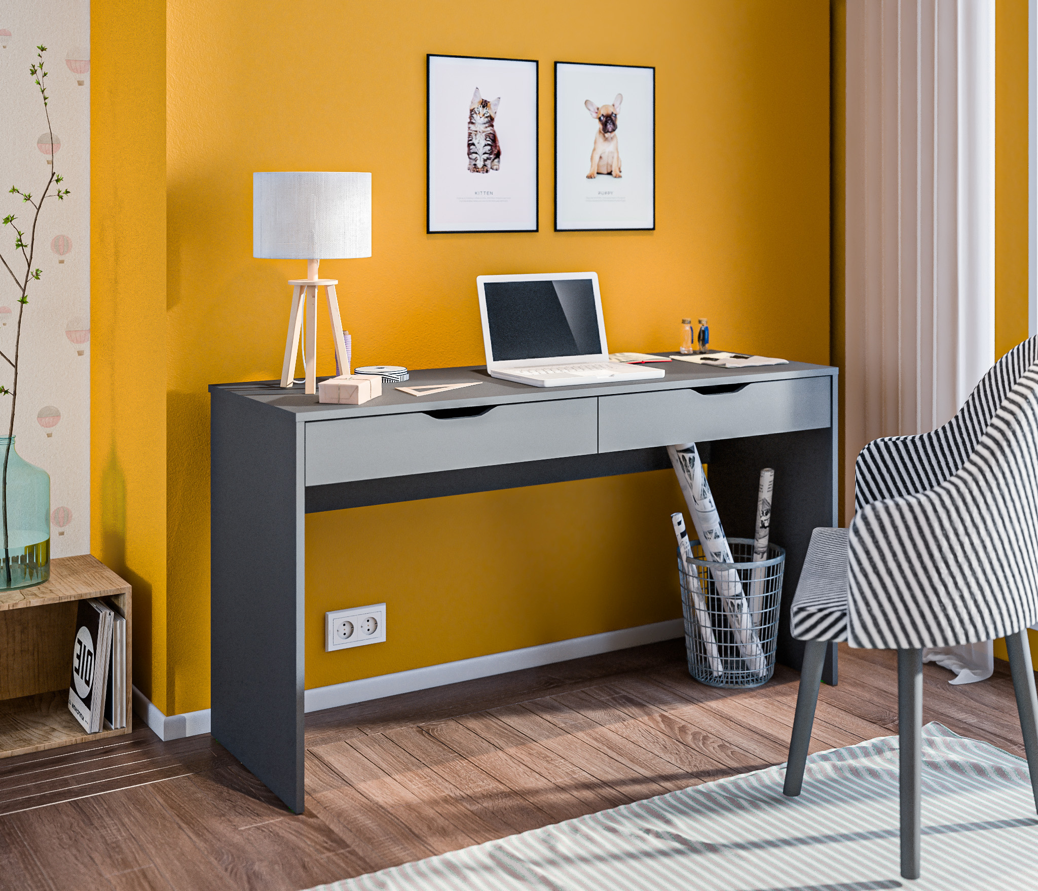 Внутри шкафа вы найдете два удобных ящика, которые помогут вам организовать мелкие предметы и аксессуары. Ящики легко выдвигаются и закрываются, обеспечивая удобный доступ к вашим вещам.